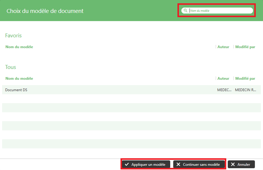 Si vous avez déjà créé des modèles de certificat médical, ils s’affichent automatiquement dans la liste.