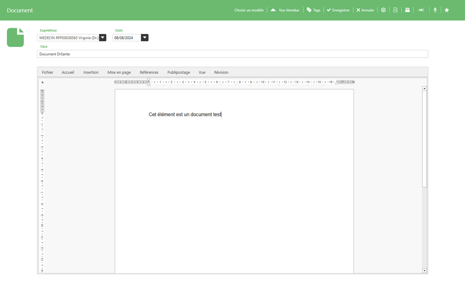 Si aucun modèle n’a été sélectionné : le document est vierge et il ne reste qu’à écrire le contenu du document manuellement.