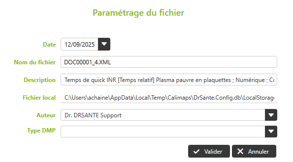 Une nouvelle fenêtre s’ouvre : modifiez les informations, validez, puis associez le document au bon patient.