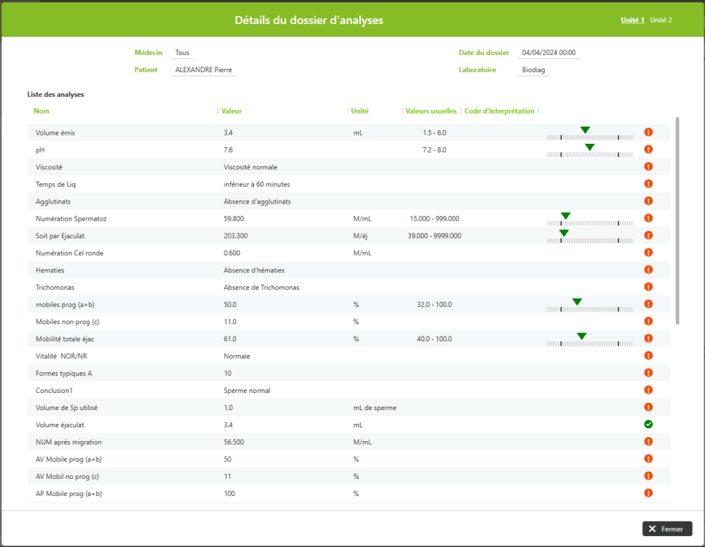 Une fois que toutes les mesures importantes ont une correspondance validée, il ne reste plus qu’à attribuer le dossier d’analyse au patient concerné et à l’importer dans son dossier.