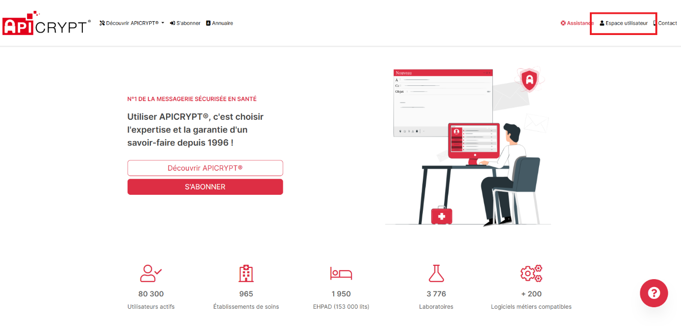- Rendez-vous sur le site https://apicrypt.org/ puis cliquez sur Espace personnel (en haut à droite).