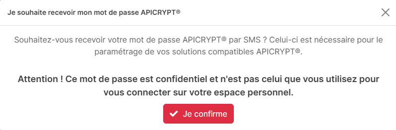 - Depuis votre espace personnel, cliquez sur Je souhaite recevoir mon mot de passe APICRYPT.