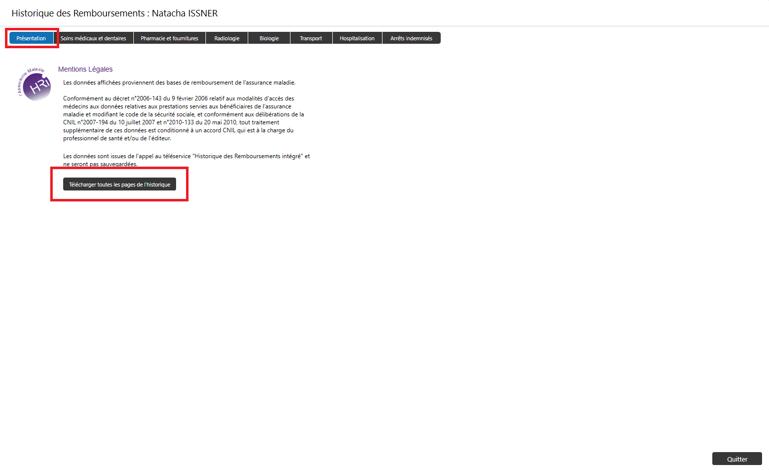 - et pour l’historique des remboursements intégré (HRi), de la carte Vitale du patient.