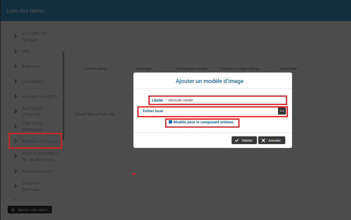 - Sélectionnez une image depuis votre ordinateur (ex. : schéma articulaire, silhouette, plan pelvien…)