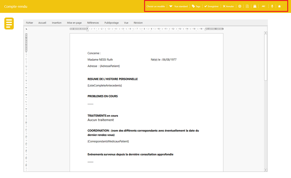 Une fois le compte-rendu finalisé, plusieurs options sont disponibles en haut de l’écran.