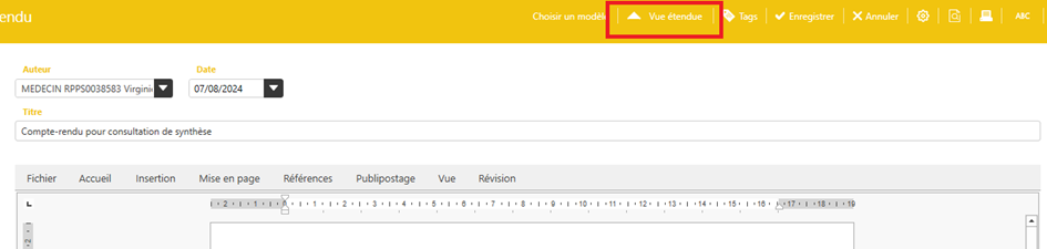 Notes : Une fois sur l’élément, le bouton « Vue étendue » situé en haut permet de paramétrer certains détails de l’élément :