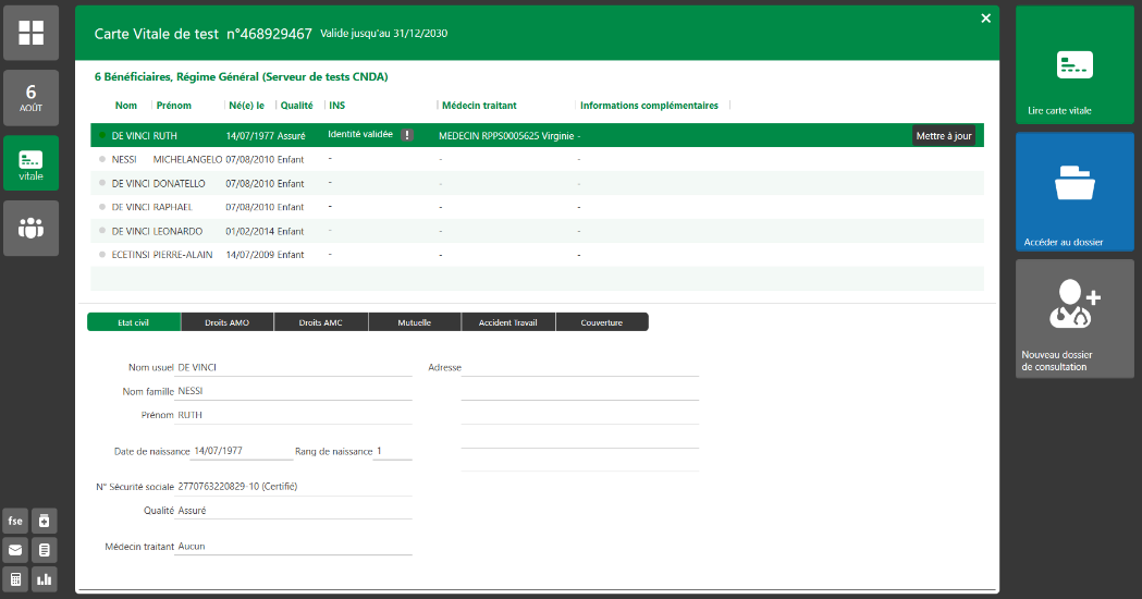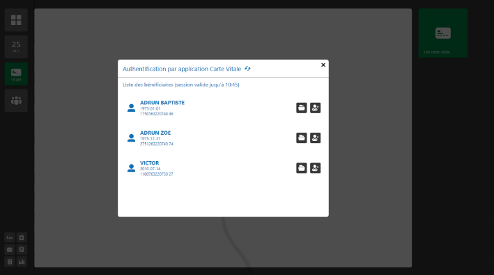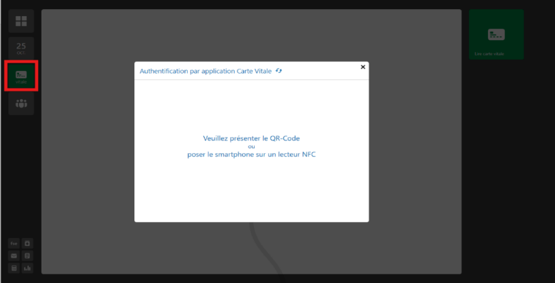 Après avoir inséré la carte vitale dans le lecteur, cliquer sur l’icône « Vitale » de la barre latérale gauche.