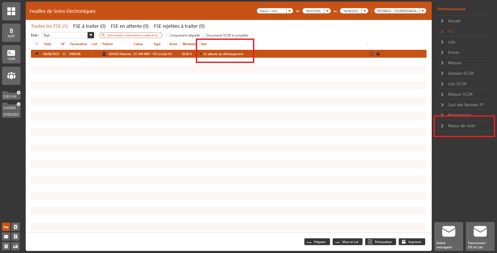 Les FSE Visite sont alors importées dans le logiciel et prêtes pour l’envoi.