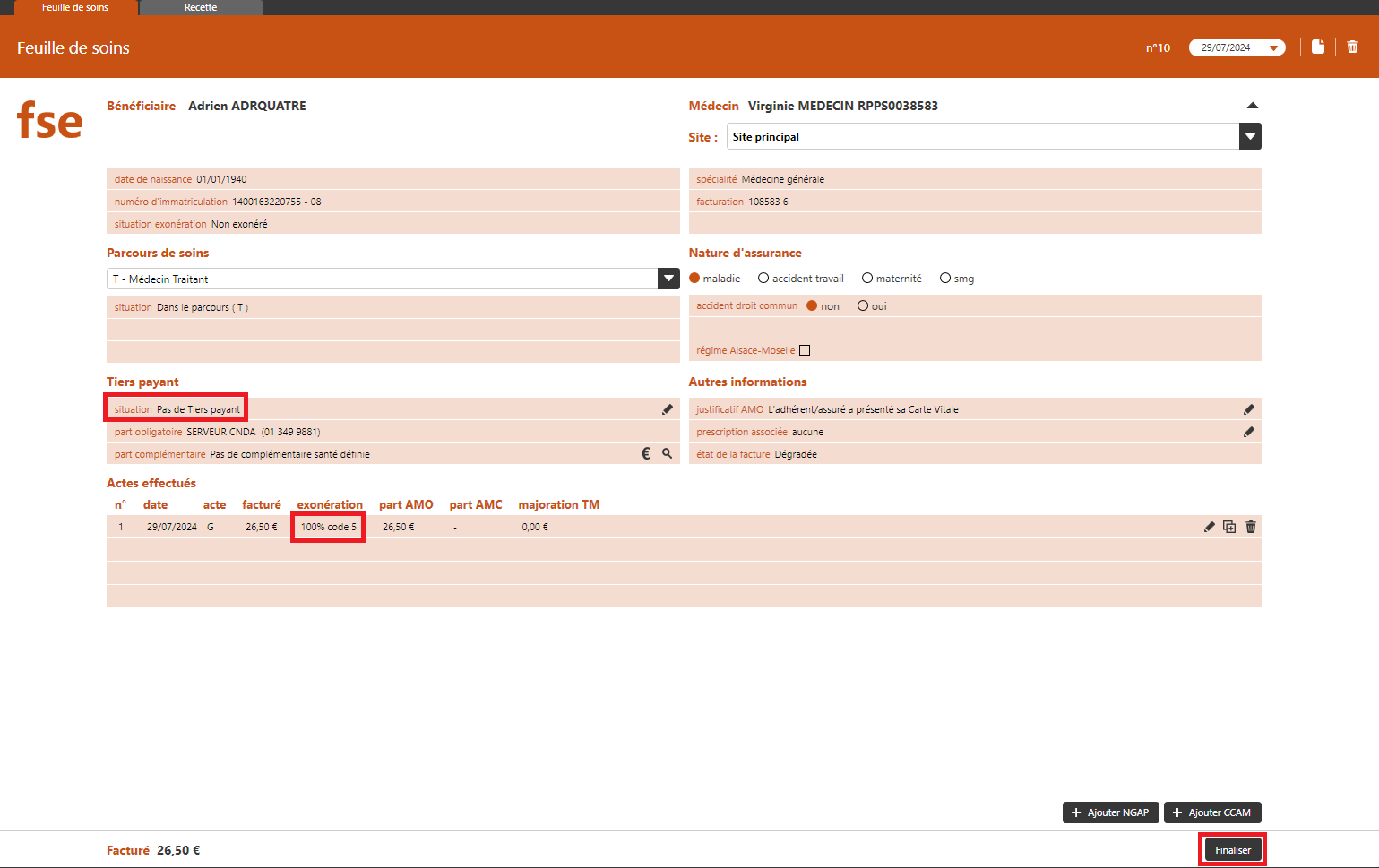 👉 Créer une FSE dégradée sans Carte Vitale