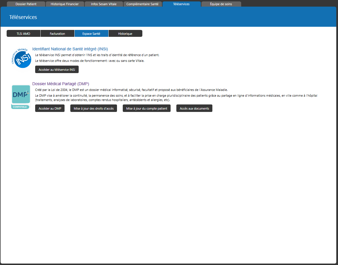 Utilisé pour qualifier l’identité du patient en conformité avec le référentiel national (INS). - DMP – Dossier Médical Partagé