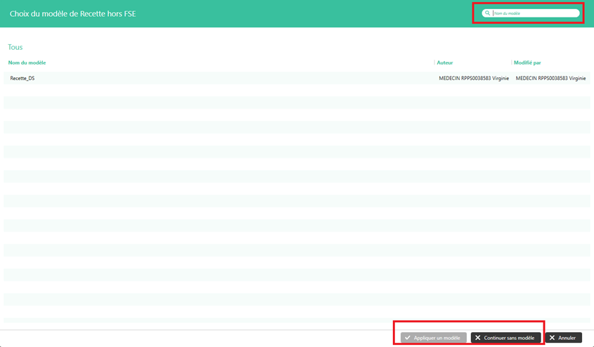 Si aucun modèle n’a été sélectionné : le document est vierge et il faudra ainsi compléter la recette hors FSE manuellement comme ci-contre :