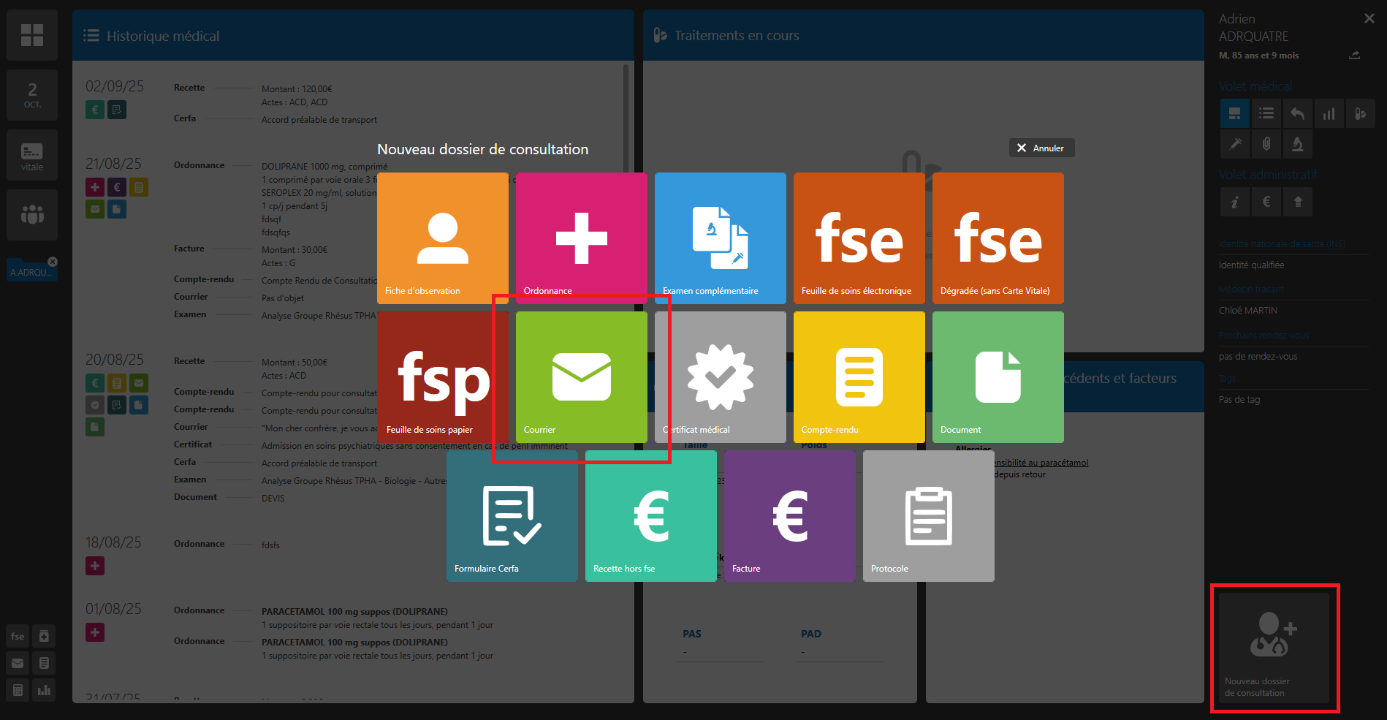 2️⃣ Depuis une consultation en créant un « Courrier »