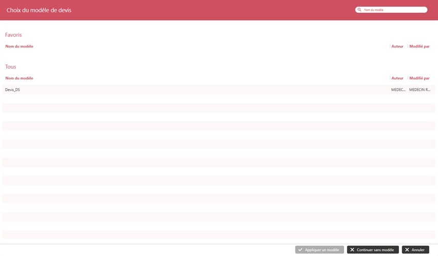 Si vous avez déjà créé des modèles de devis, ils s’affichent automatiquement dans la liste.