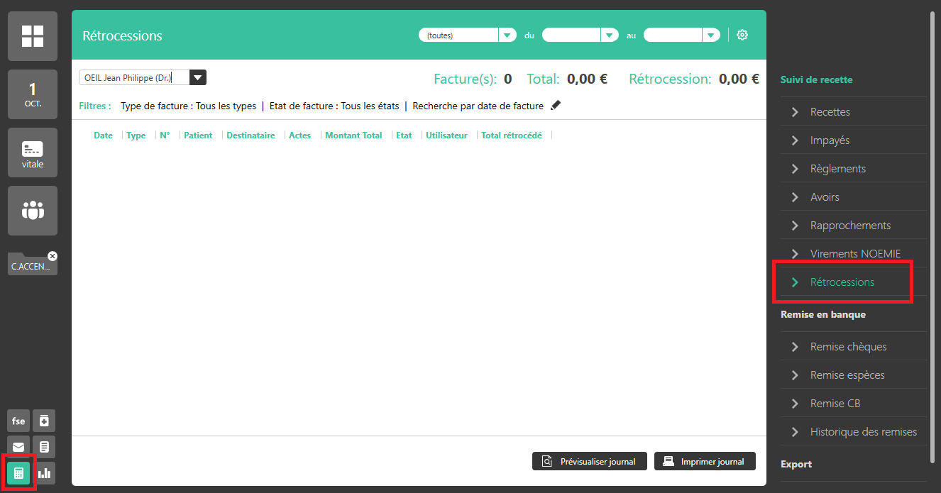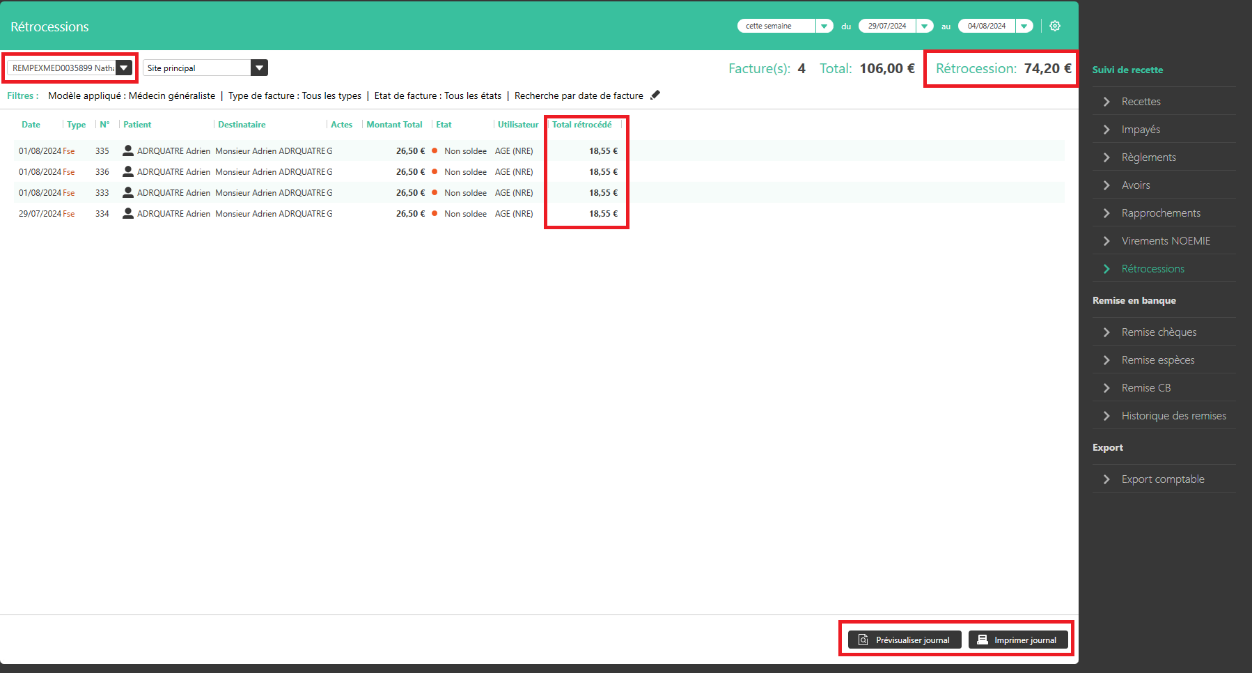 - Il est possible de prévisualiser ou d’imprimer le journal pour suivre les rétrocessions sur une période définie.