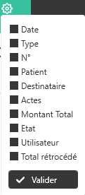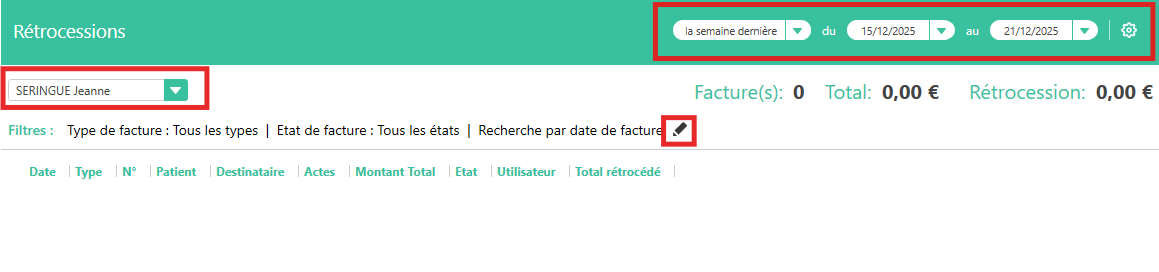 - Filtre utilisateur : afficher les rétrocessions d’un praticien spécifique.