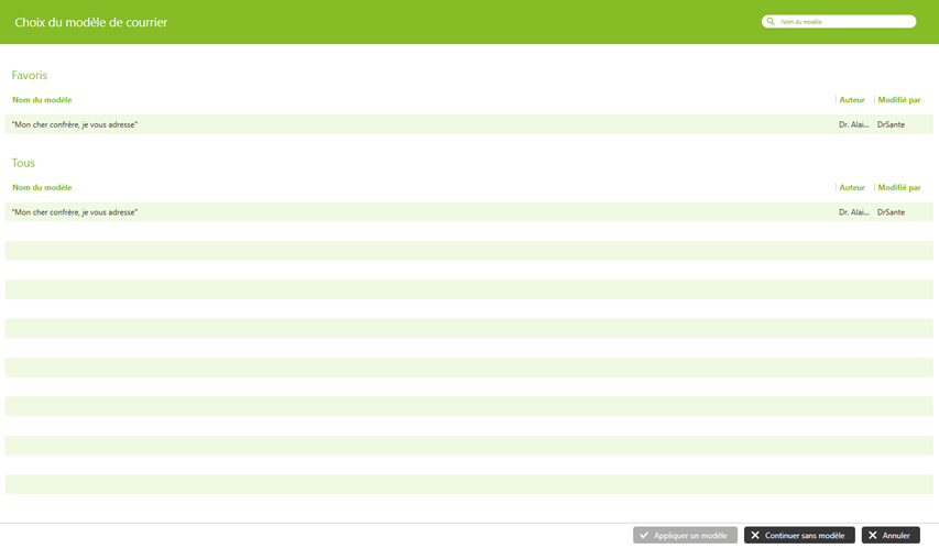 Si vous avez déjà créé des modèles de courrier, ils s’affichent automatiquement dans la liste.
