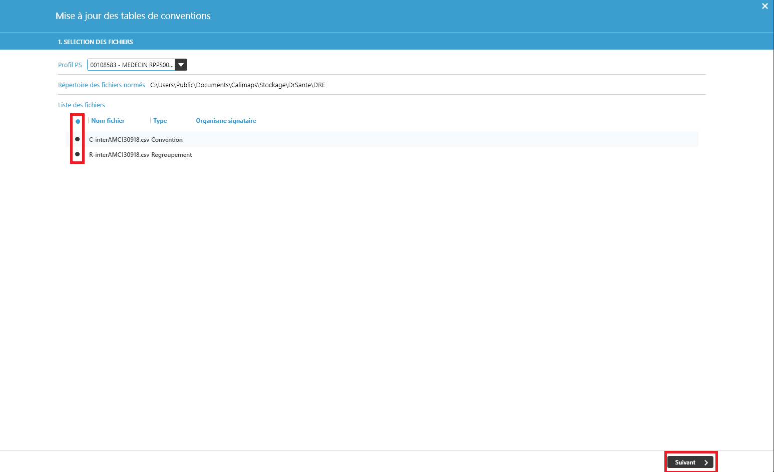 Placez-y les fichiers de convention mutuelle fournis par InterAMC.