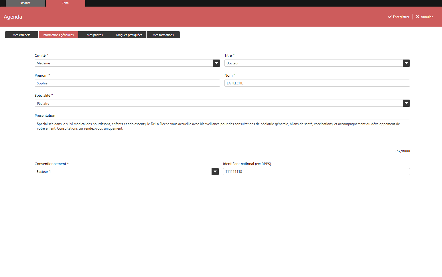 Une fois tous les renseignements de votre profil praticien remplis, cliquez sur « Enregistrer ».