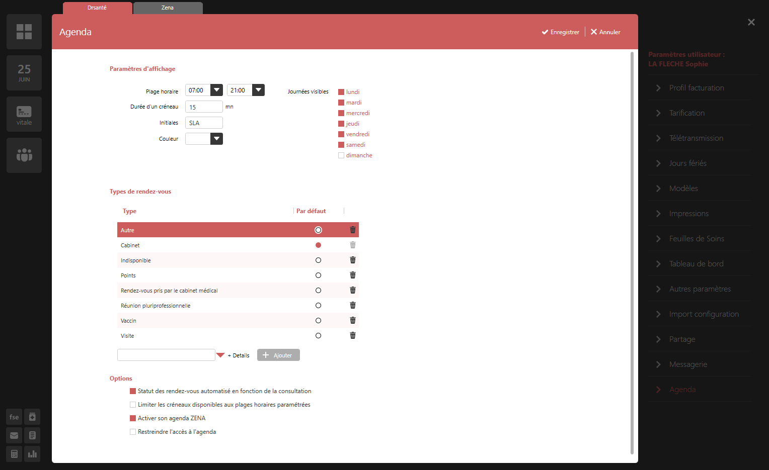 urgences, nouveaux patients, etc.). Pour cela, il suffit de vous rendre dans les Paramètres utilisateur > Agenda.