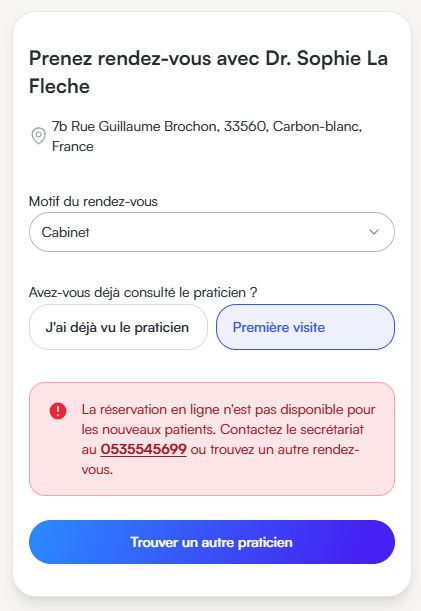 «Pour toute nouvelle prise de rendez-vous, veuillez