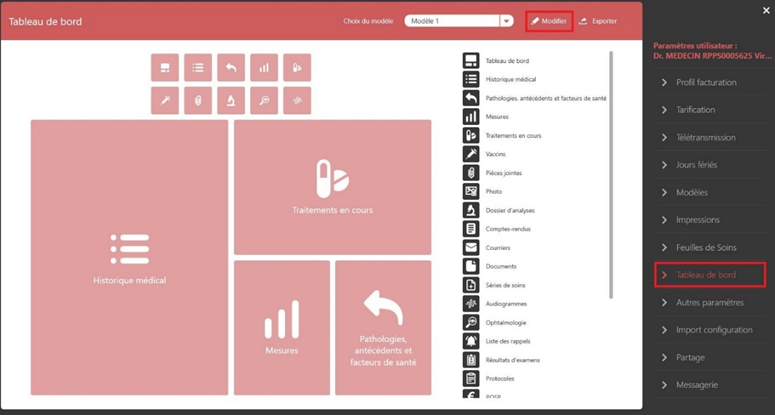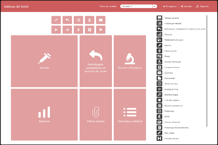 - Personnalisez également l’affichage des icônes présentes dans le volet médical, dans la barre latérale droite du dossier patient.