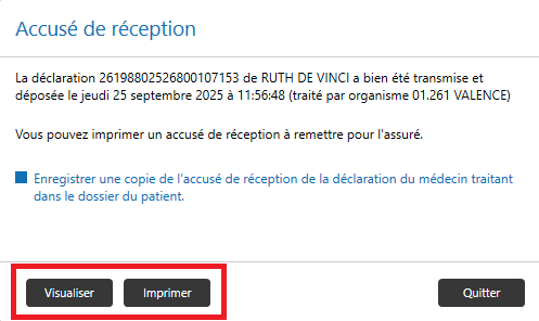- vous pouvez visualiser et imprimer l’accusé de réception,