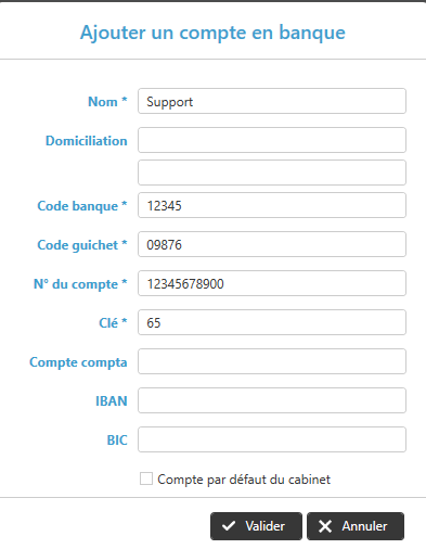 Avant de réaliser une remise en banque, il est nécessaire de configurer au moins un compte bancaire.