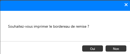 - Une fenêtre apparaît avec la proposition d’imprimer ou non le bordereau de remise.