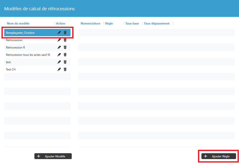 - Après avoir sélectionné votre modèle nouvellement créé, cliquez sur « + Ajouter une règle » (en bas à droite).