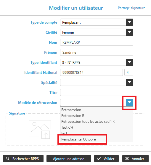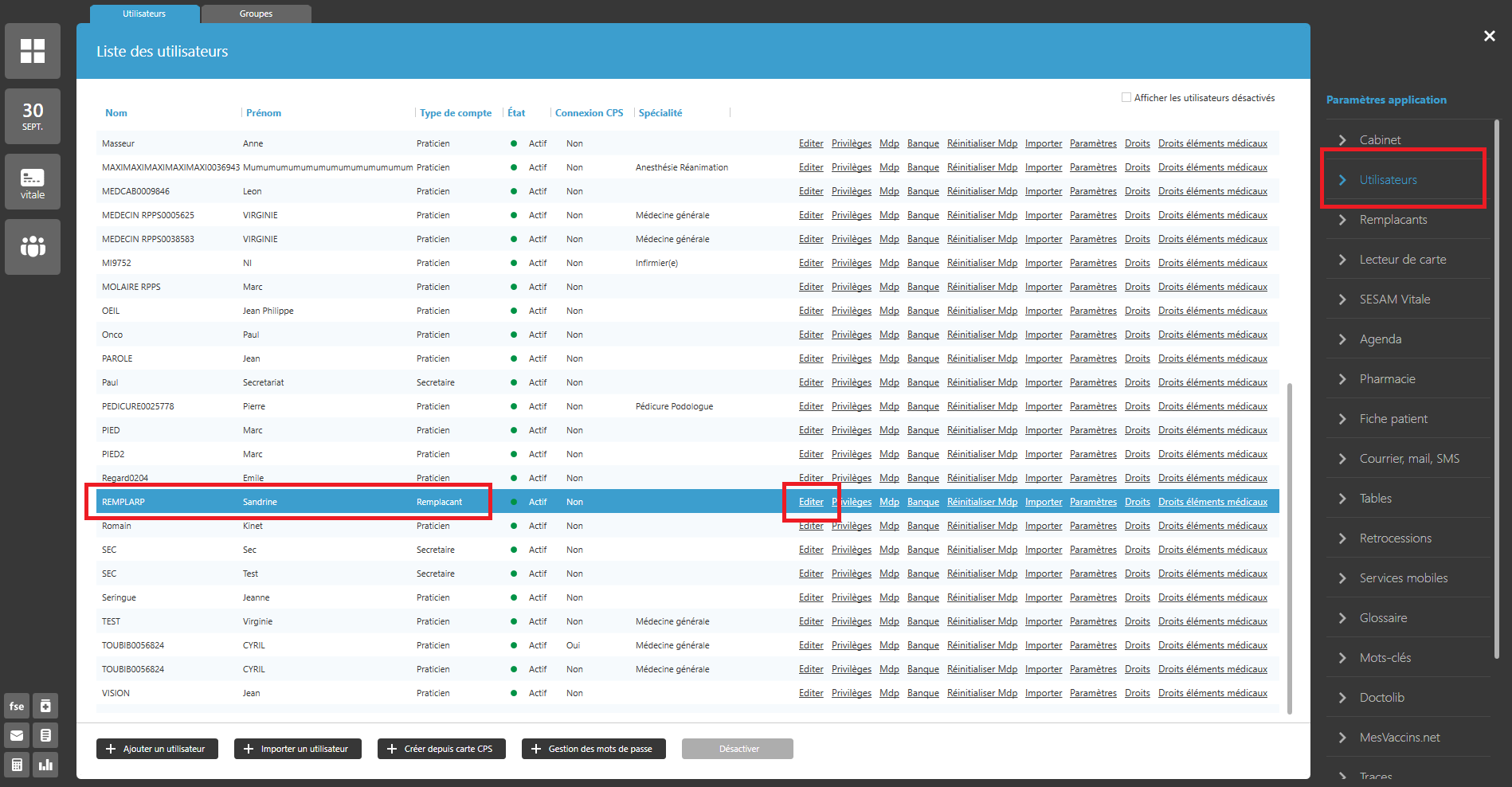 - Sélectionnez le remplaçant et cliquez sur Éditer.
