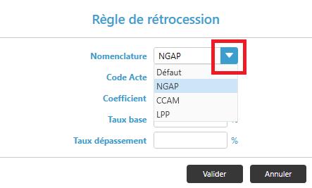 - Sélectionnez une catégorie spécifique pour que le calcul de rétrocession ne concerne que certains actes.