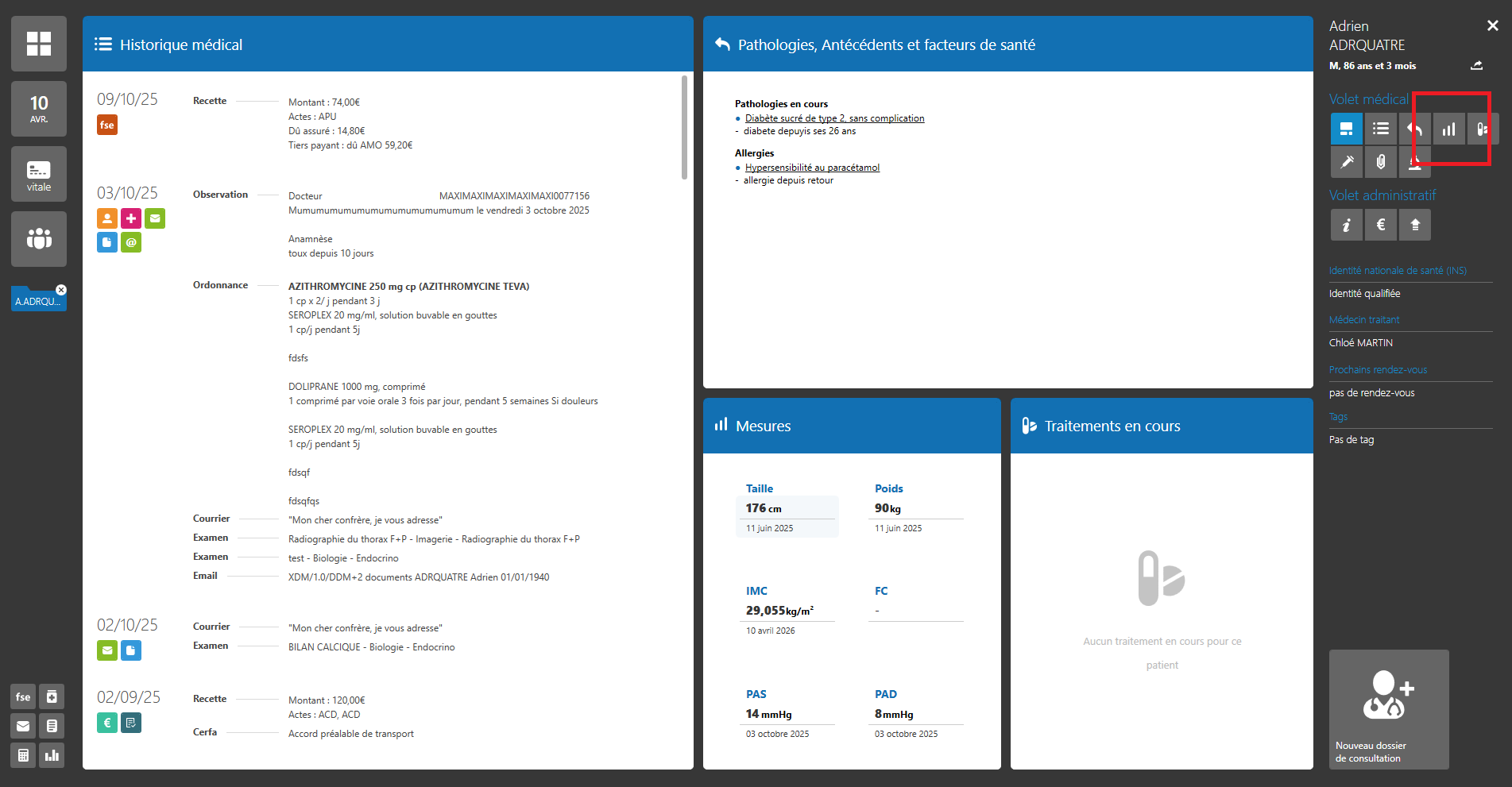2. Dans le Volet médical (en haut à droite), cliquez sur l’onglet Mesures.