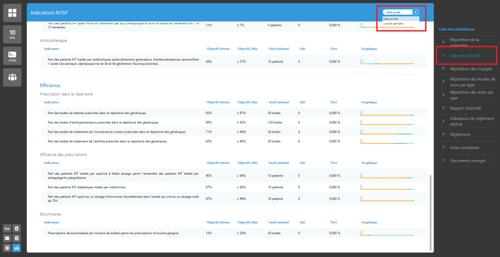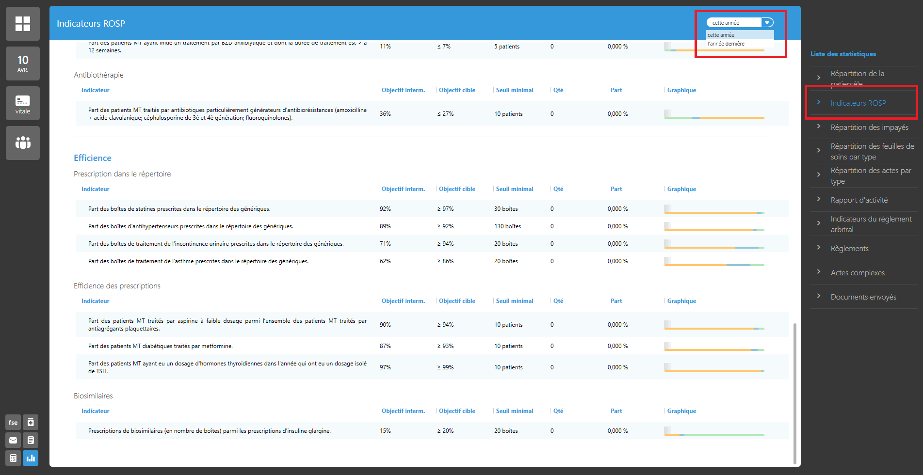 2. Allez dans l’onglet Indicateurs ROSP situé sur la droite.