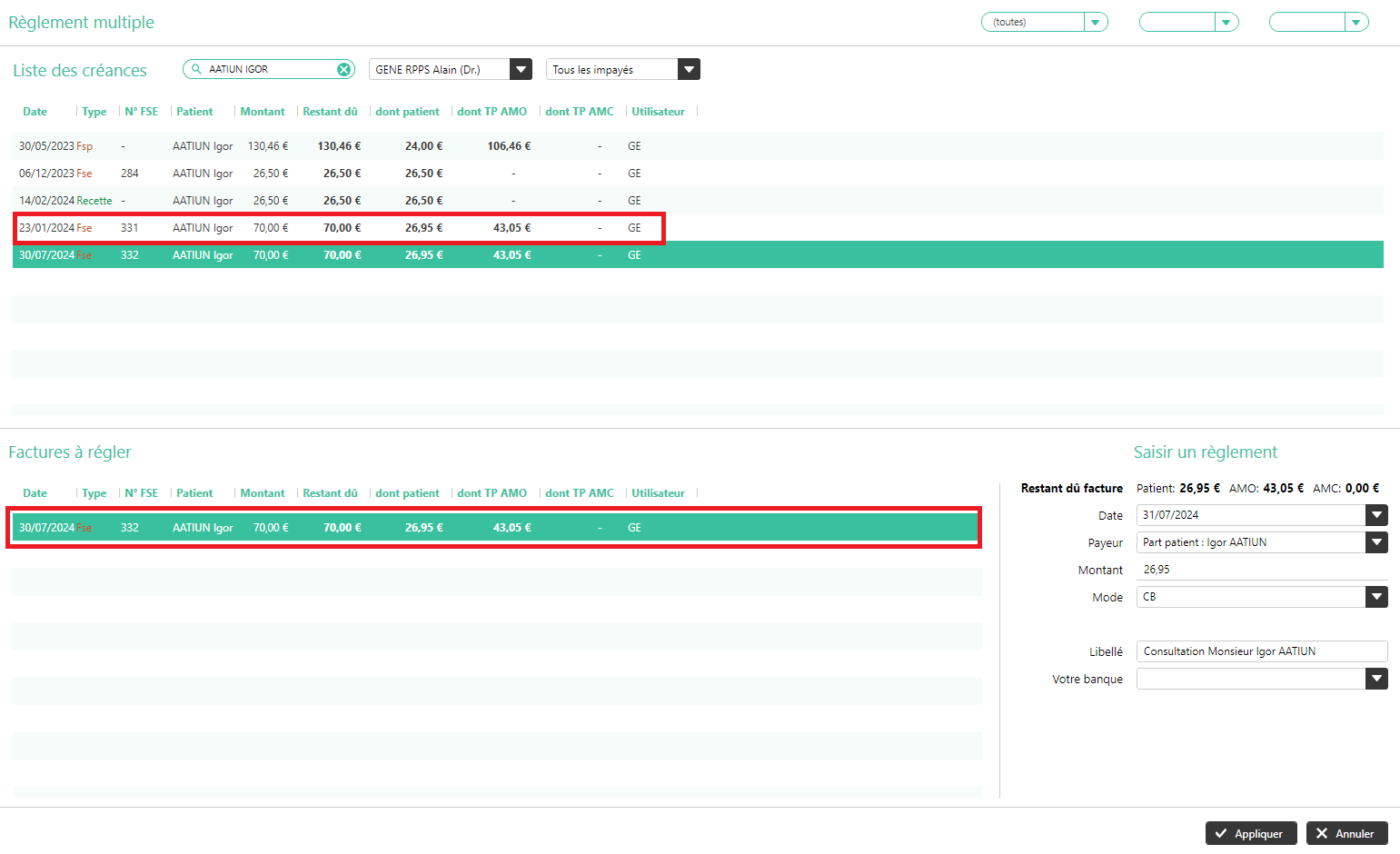 Que vous soyez sur une facture, une recette ou une FSE, le fonctionnement est identique.